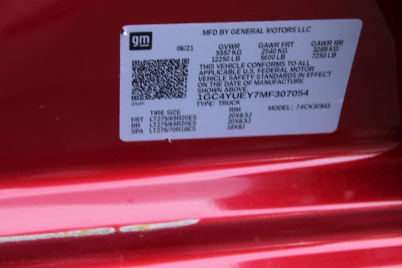 LTZ Convenience Package: LED Cargo Area Lighting; Ventilated Driver and Front Passenger Seats; 2nd Row Heated Outboard Seats; Power Tailgate; Power Sliding Rear Window with Defogger; Front Bucket Seats; 2 USB Ports Inside Console; Universal Home Remote. Z71 Off-Road and Protection Package. Preferred Equipment Group 1LZ: HD Rear Vision Camera; Perforated Leather-Appointed Front Outboard Seat Trim; Bluetooth For Phone; Remote Vehicle Starter System; Electric Rear-Window Defogger; Advanced Trailering System; Wireless Phone Projection; Unauthorized Entry Theft-Deterrent System; Chrome Front Grille Bar with Chrome Grille Inserts; 170 Amp Alternator; Compass Located in Instrument Cluster; 4.2" Diagonal Color Display Driver Info Center; Heated Steering Wheel; Electrical Lock Control Steering Column; Up-Level Rear Seat with Storage Package; 120-Volt Instrument Panel Power Outlet; Front LED Fog Lamps; Steering Wheel Audio Controls; Color-Keyed Carpeting Floor Covering; OnStar and Chevrolet Connected Services Capable; 120-Volt Bed Mounted Power Outlet; Front Rubberized Vinyl Floor Mats; Rear Rubberized-Vinyl Floor Mats; Power Front Passenger Windows with Express Up/down; 2-Speed Active Transfer Case; Deep-Tinted Glass; Chevrolet Infotainment 3 Plus System Radio; Power-Adjustable Outside Mirrors; Chrome Mirror Caps; Steering Wheel Mounted Electronic Cruise Control; Power Rear Windows with Express Down; Integrated Trailer Brake Controller; Power Front Windows with Driver Express Up/down; Leather-Wrapped Steering Wheel; Manual Tilt/telescoping Steering Column; EZ Lift Power Lock and Release Tailgate; 2nd Row Dual USB Charge-Only Ports; Keyless Open and Start; 4G LTE Wi-Fi Hotspot Capable; Auto-Dimming Inside Rearview Mirror; Rear Wheelhouse Liners; 12-Volt Rear Auxiliary Power Outlet; Power Door Locks. Gooseneck/5th Wheel Package. 20" 6-Spoke Polished Aluminum Wheels. Power Sunroof. 3" Round Black Tubular Off-Road Assist Steps. Chevytec Spray-On Black Bedliner with Chevrolet Logo. Cherry Red Tintcoat. Spare LT275/70R18 AT BW Tire. Z71 Off-Road Package. Bed View Camera with Two Trailer Camera Provisions. LT275/65R20 AT BW Tires. Upfitter Switch Kit (5). Skid Plates. LED Cargo Area Lighting. Trailer Tire Pressure Monitor Sensors. **Equipment listed is based on original vehicle build and subject to change. Please confirm the accuracy of the included equipment by calling the dealer prior to purchase.**