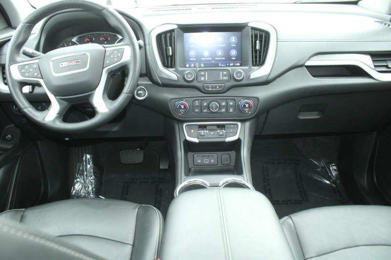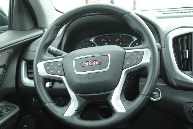 Lane Keep Assist in the GMC Terrain helps maintain safe driving by gently steering to stay within the lane. Keep your hands warm all winter with a heated steering wheel in it . The GMC Terrain's Lane Departure Warning keeps you safe by alerting you when you drift from your lane. Never get into a cold vehicle again with the remote start feature on the vehicle. This vehicle offers Automatic Climate Control for personalized comfort. The leather seats in this model are a must for buyers looking for comfort, durability, and style. This 2024 GMC Terrain 's AutoCheck: 1 owner, assurance of single-owner history for peace of mind. Protect it from unwanted accidents with a cutting edge backup camera system. This mid-size suv has a clean AutoCheck report, ensuring its impeccable vehicle history. This model features a hands-free Bluetooth phone system. With the keyless entry system on it you can pop the trunk without dropping your bags from the store.